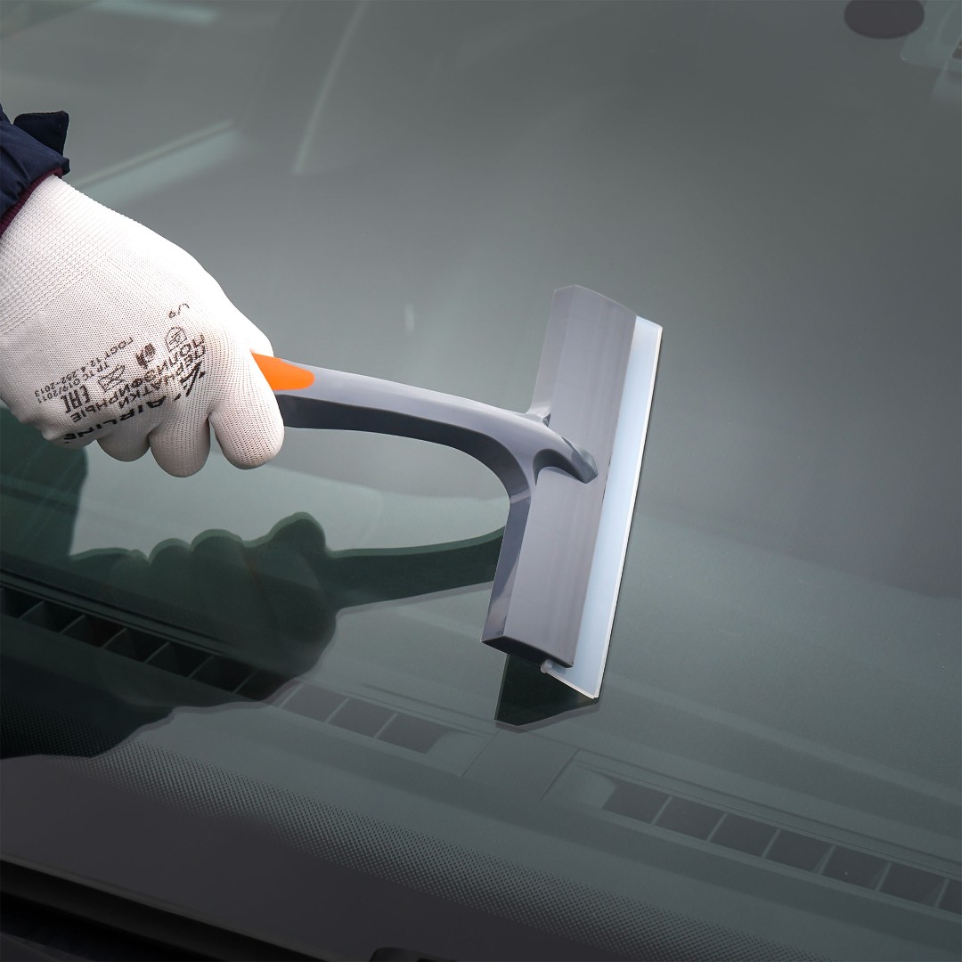 Водосгон изготовлен из силикона, который мягко и плавно удаляет жидкость, не оставляя царапин после работы. Силиконовая поверхность обеспечивает эксплуатацию изделия на протяжении длительного периода времени, т.к. рабочая поверхность не подвергается быстрому износу и поломкам.