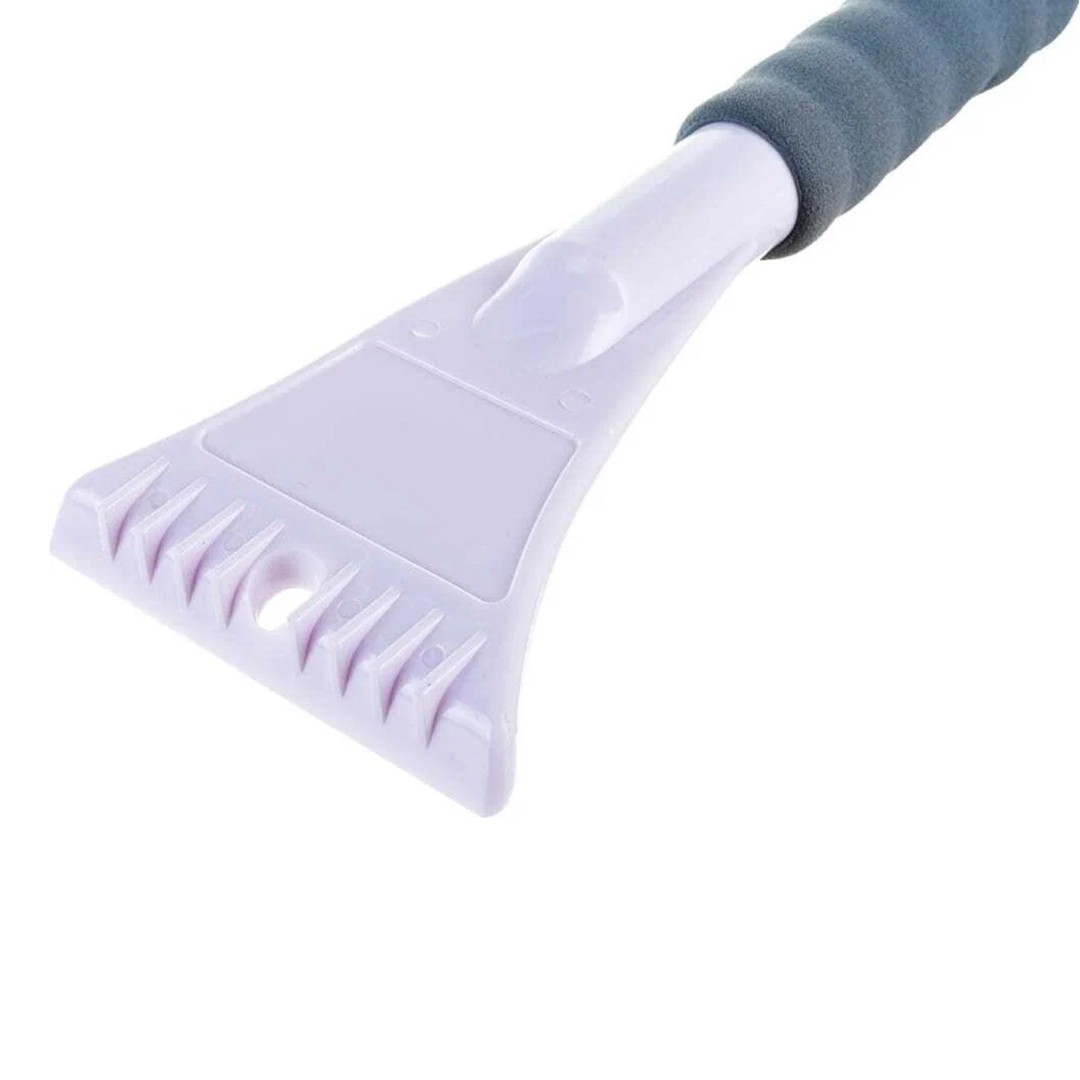 В состав рукоятки входит прочный пластик, который не подвержен перепадам температур. Для особо сложных загрязнений и льда предусмотрен скребок на другом конце щетки.