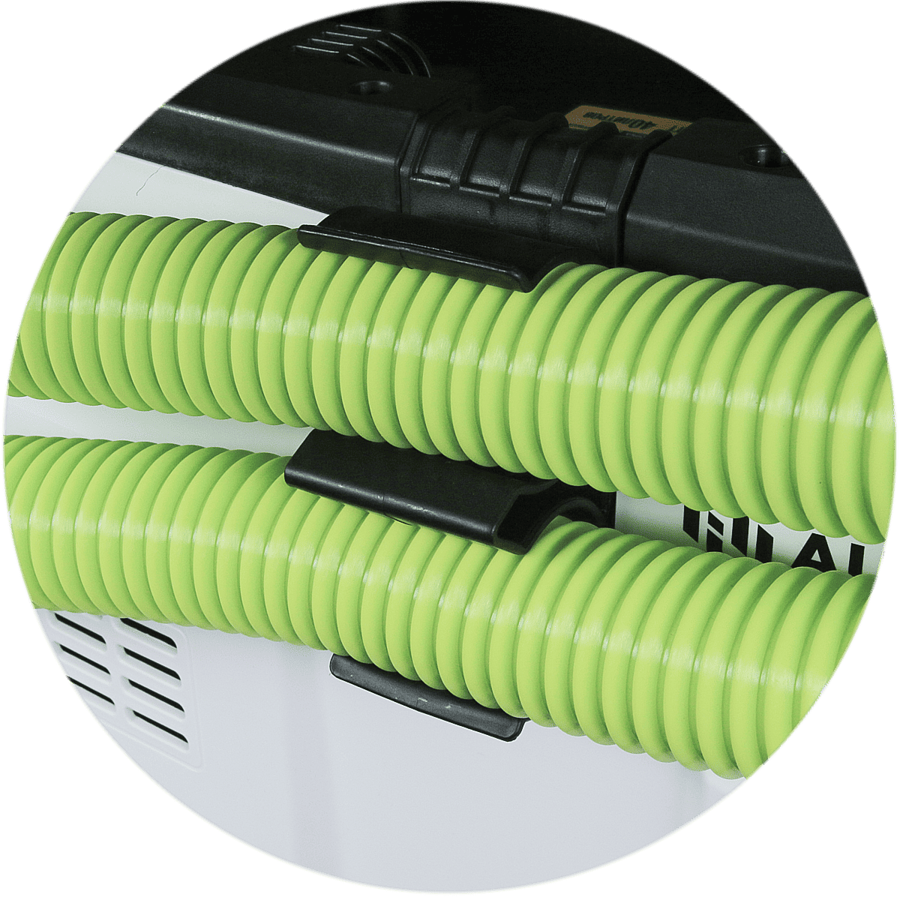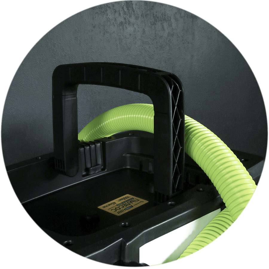 Пылесос оснащён внутренней пневмолинией, позволяющей обеспечить подключение пневмоинструмента непосредственно через пылесос.