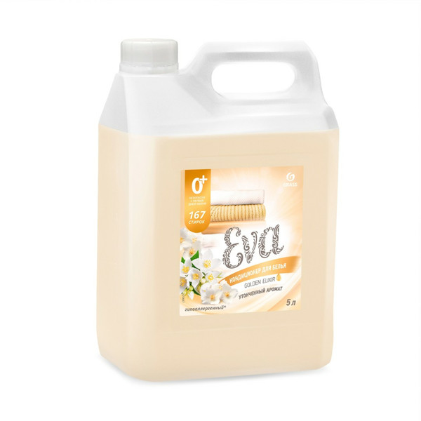 GRASS EVA GOLDEN ELIXIR - кондиционер-ополаскиватель для белья. Идеально подходит для машинной и ручной стирки всех видов ткани. Придает белью мягкость и приятный аромат. Благодаря своей особой формуле сохраняет цвет и структуру волокон ткани. Обладает антистатическим эффектом, облегчает глажение после стирки.