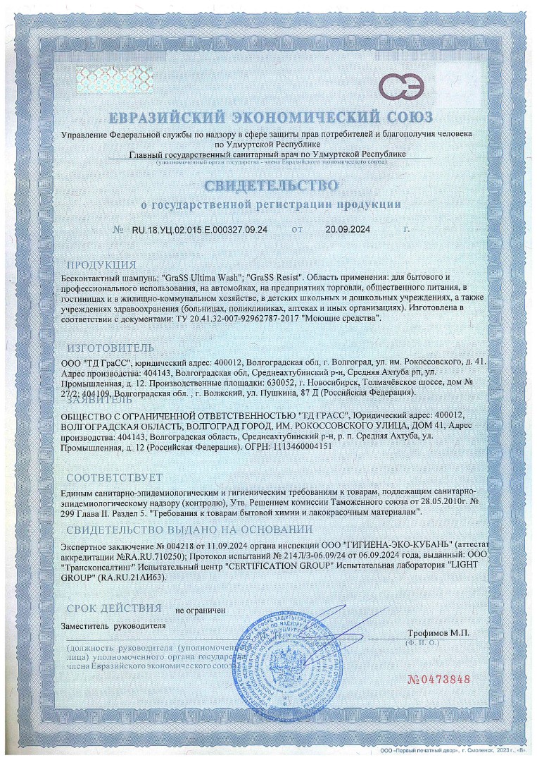 GRASS ULTIMA WASH - бесконтактный шампунь (однокомпонентная активная пена для бесконтактной мойки), уровень pH=11.8.