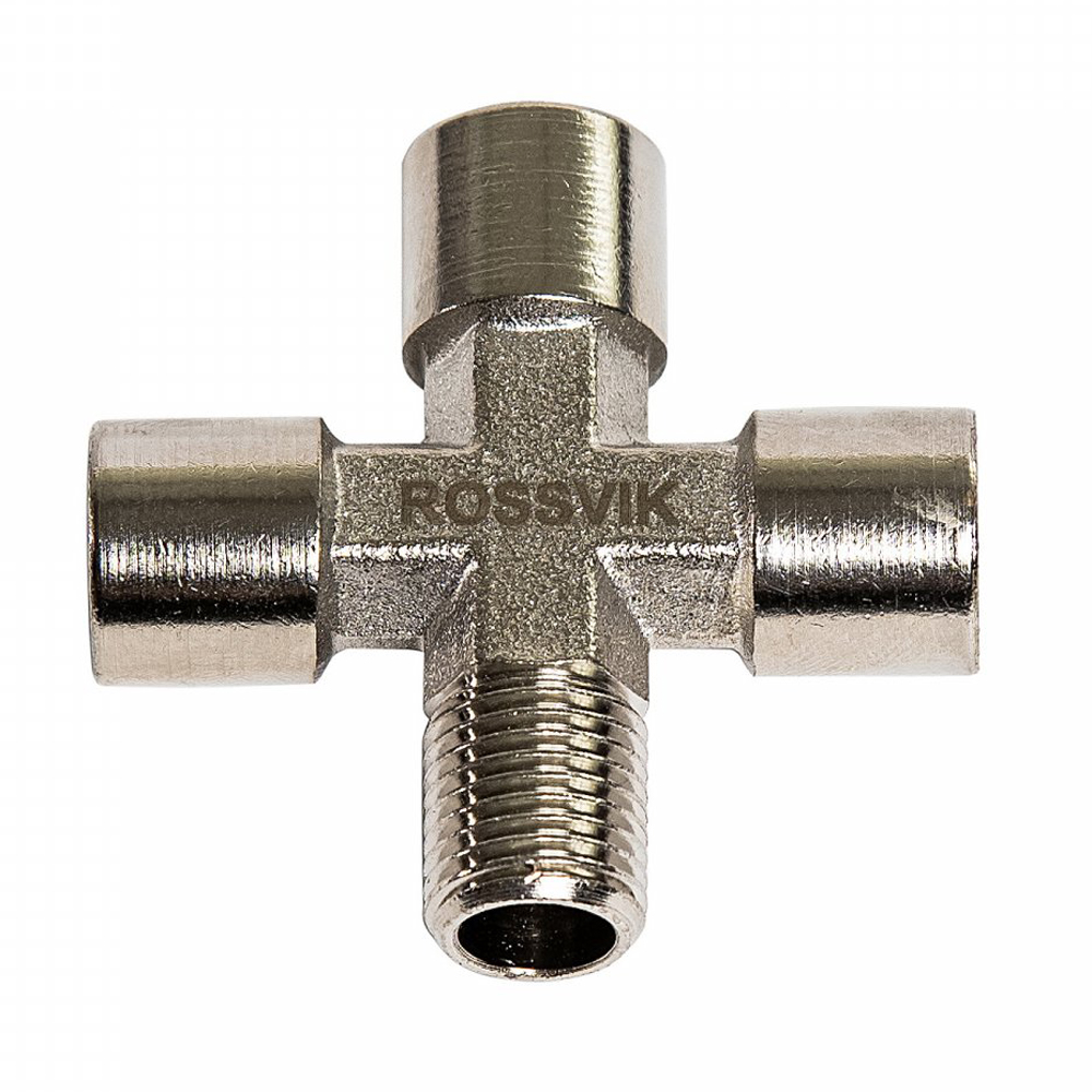 КРЕСТ резьбовой, пневматический, 1/4" ш - 1/4" г - 1/4" ш - 1/4" г, Rossvik