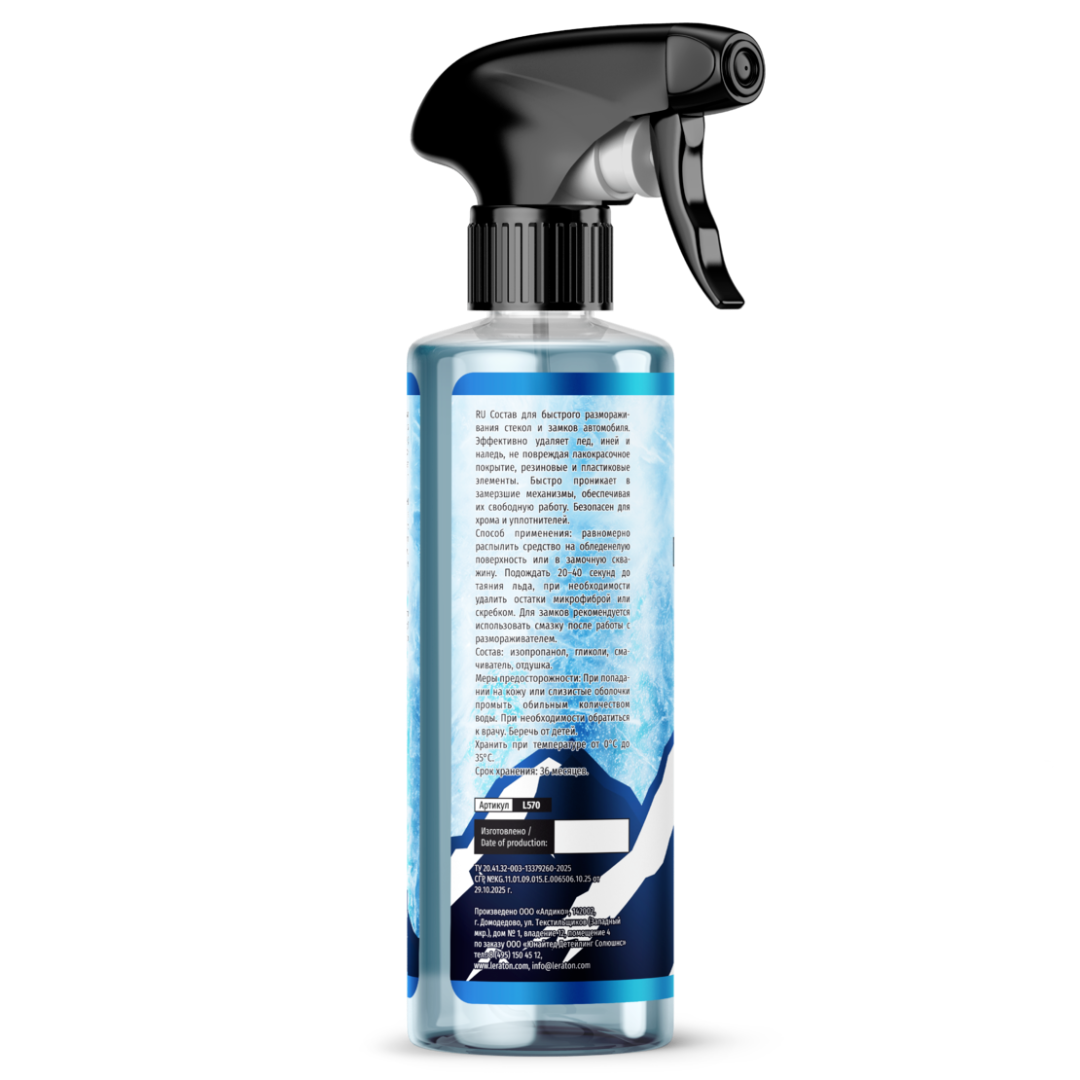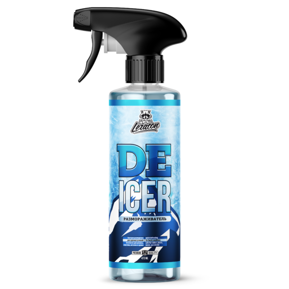 LERATON DE-ICER - состав для быстрого размораживания стекол и замков автомобиля. Эффективно удаляет лед, иней и наледь, не повреждая лакокрасочное покрытие, резиновые и пластиковые элементы. Быстро проникает в замерзшие механизмы, обеспечивая их свободную работу. Безопасен для хрома и уплотнителей.