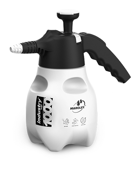 MAROLEX INDUSTRY ERGO 1000 ACID - кислотостойкий ручной помповый опрыскиватель объемом 1 л нового поколения серии Industry Ergo. Ручные помповые опрыскиватели серии Industry Ergo предназначены для уборки и санитарной обработки поверхностей, могут быть использованы при дезинфекции помещений и в автомойках. Основным назначением серии является применение кислотных и нейтральных чистящих средств и химикатов.