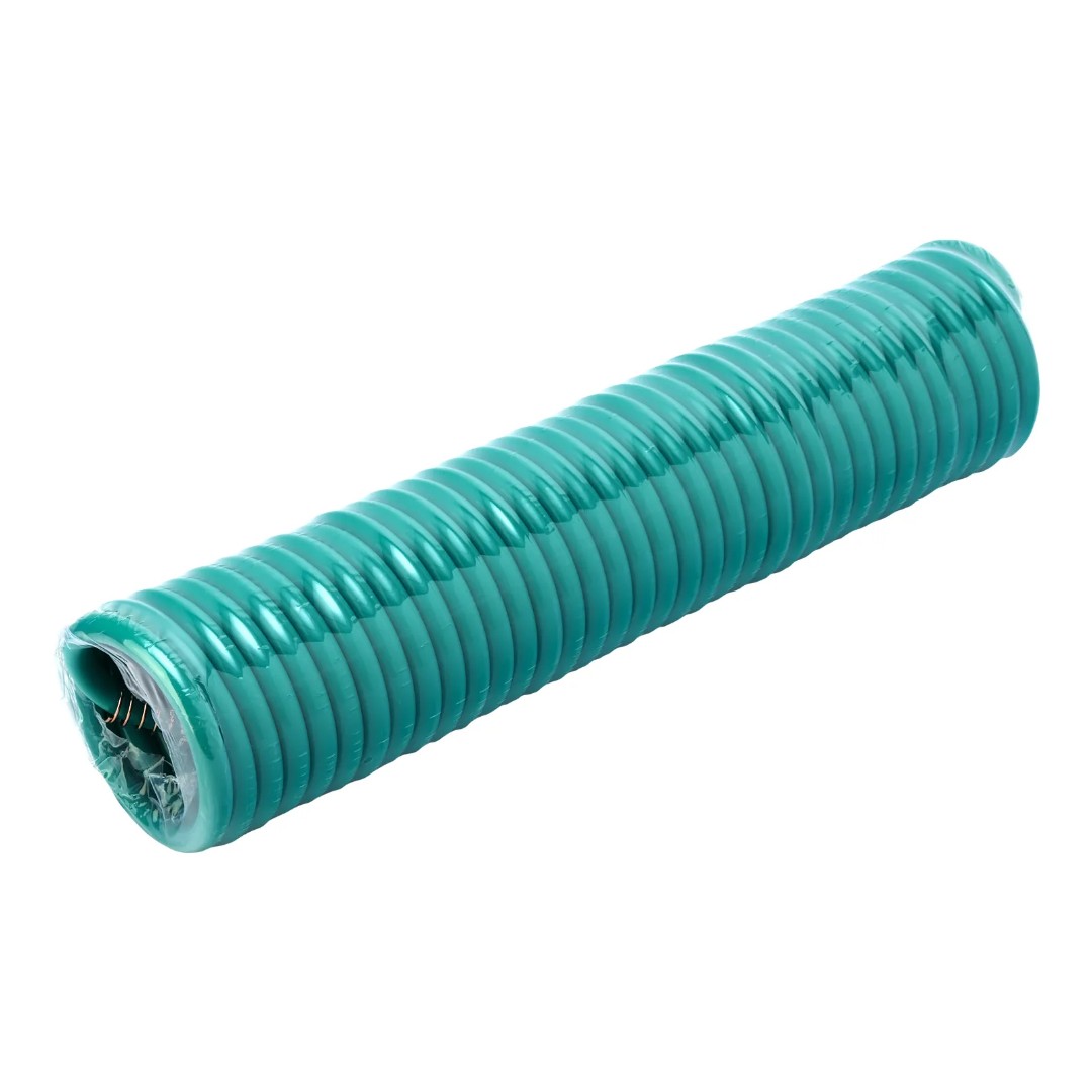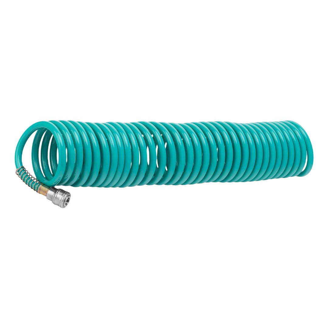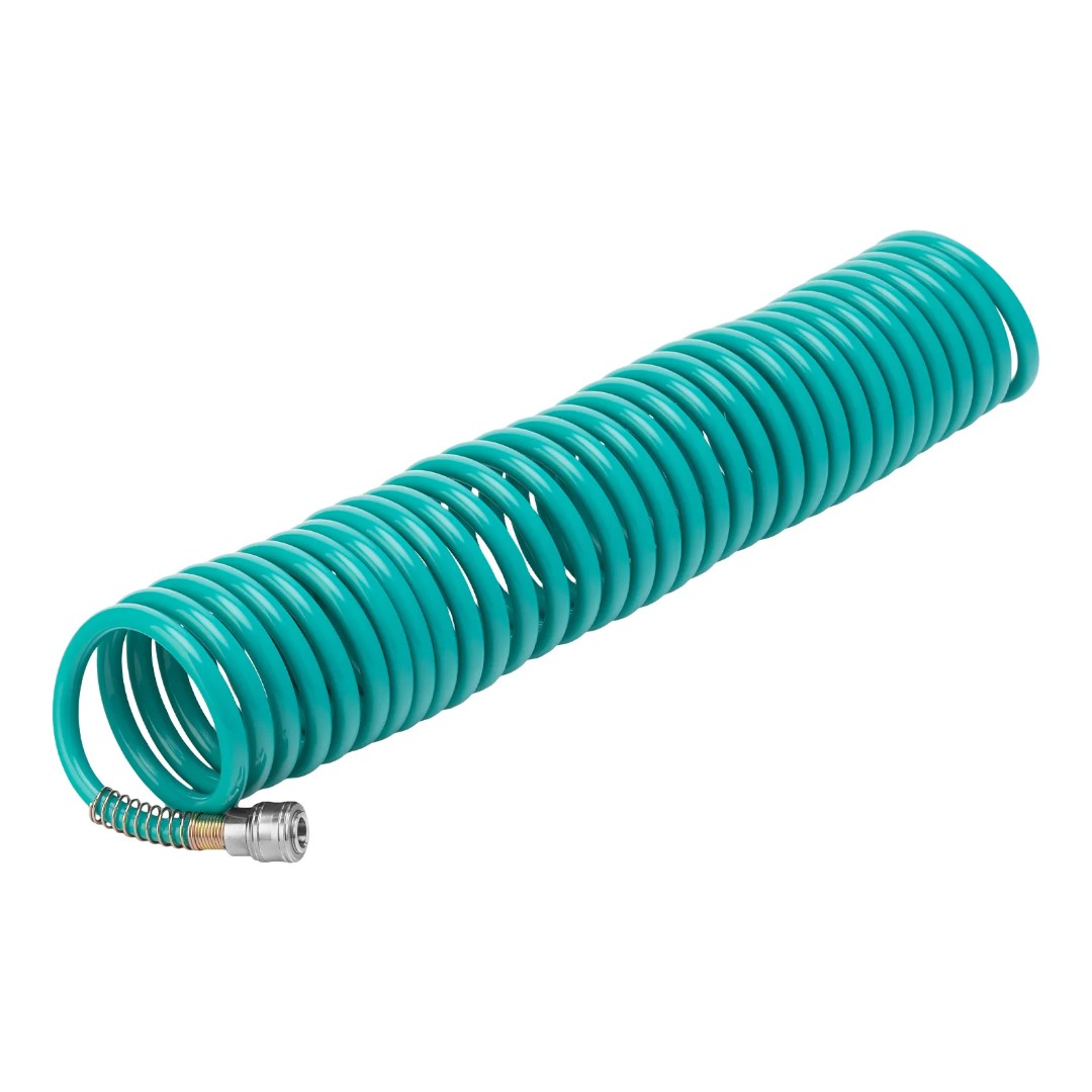 Используется для подключения пневмоинструментов к компрессору. Изготовлен из легкого полиэтилена, за счет чего даже длительная работа не вызывает усталости. Имеет форму спирали, поэтому его не нужно скручивать после работы. Рукав пригодится в автосервисе, слесарной мастерской, а также во время отделочных работ.