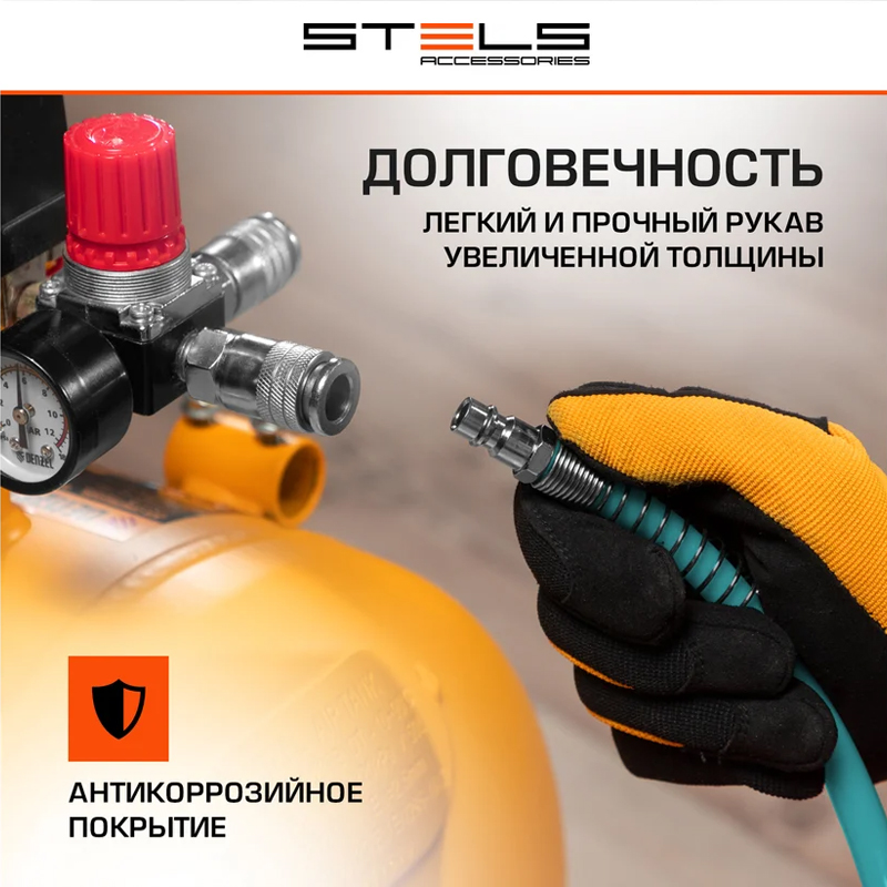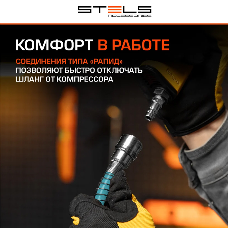 ШЛАНГ пневматический, спиральный,10 м, PE, с быстросъемными соединениями, Stels
