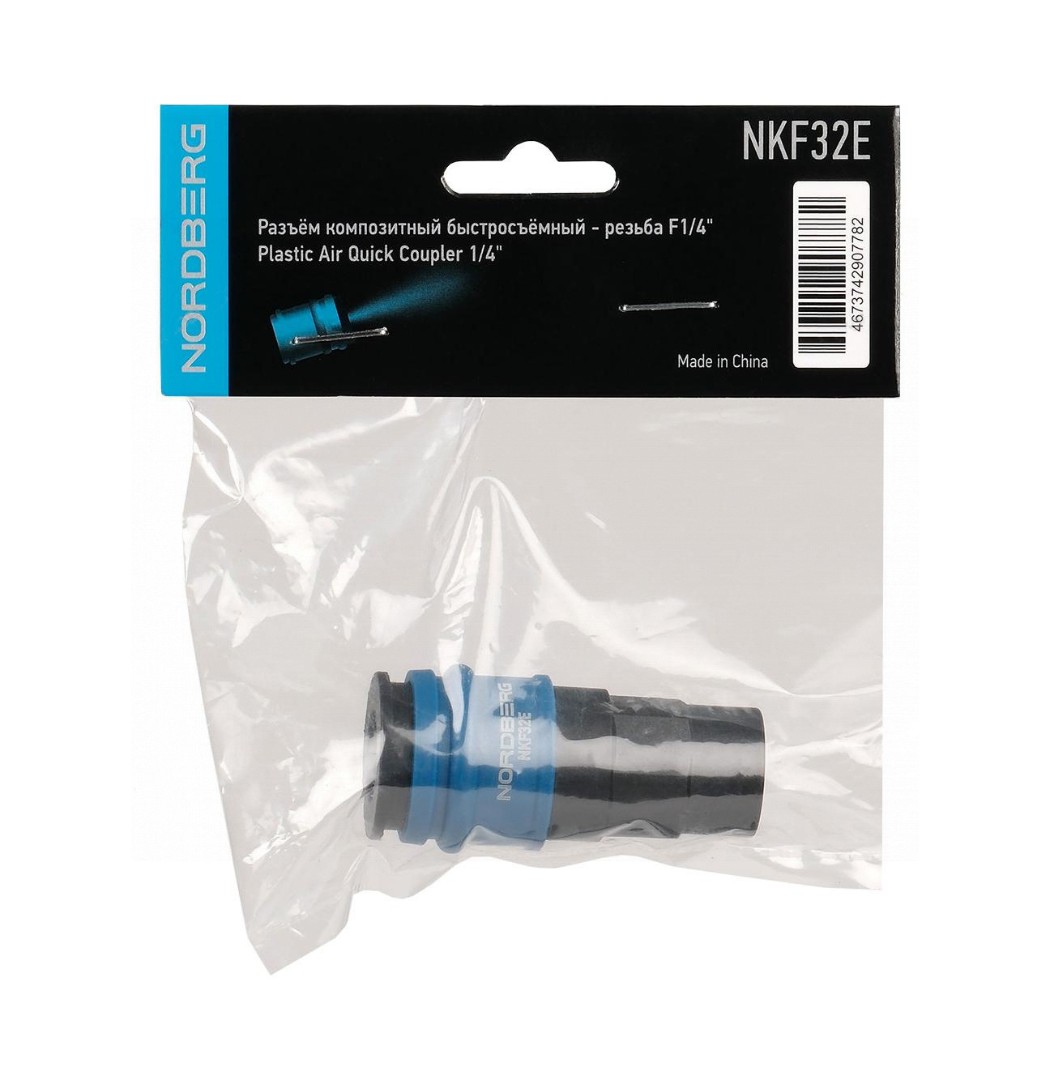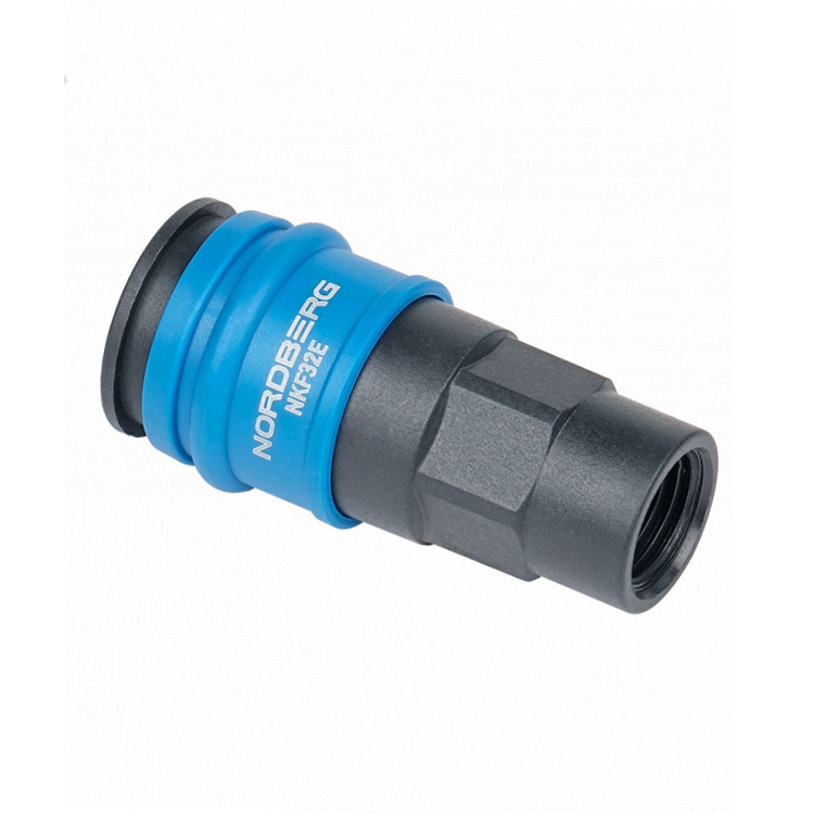 NORDBERG NKF32E - быстросъемная муфта (розетка) серии Эконом для быстрого подключения/отключения подачи сжатого воздуха. Изготовлена из композитного материала, что обеспечивает большую легкость по сравнению с металлическими аналогами, а также сокращает риски повреждений покрытия автомобиля. Благодаря полной неподверженности коррозии хорошо подходит для использования в местах с высокой влажностью, например на автомойках.
