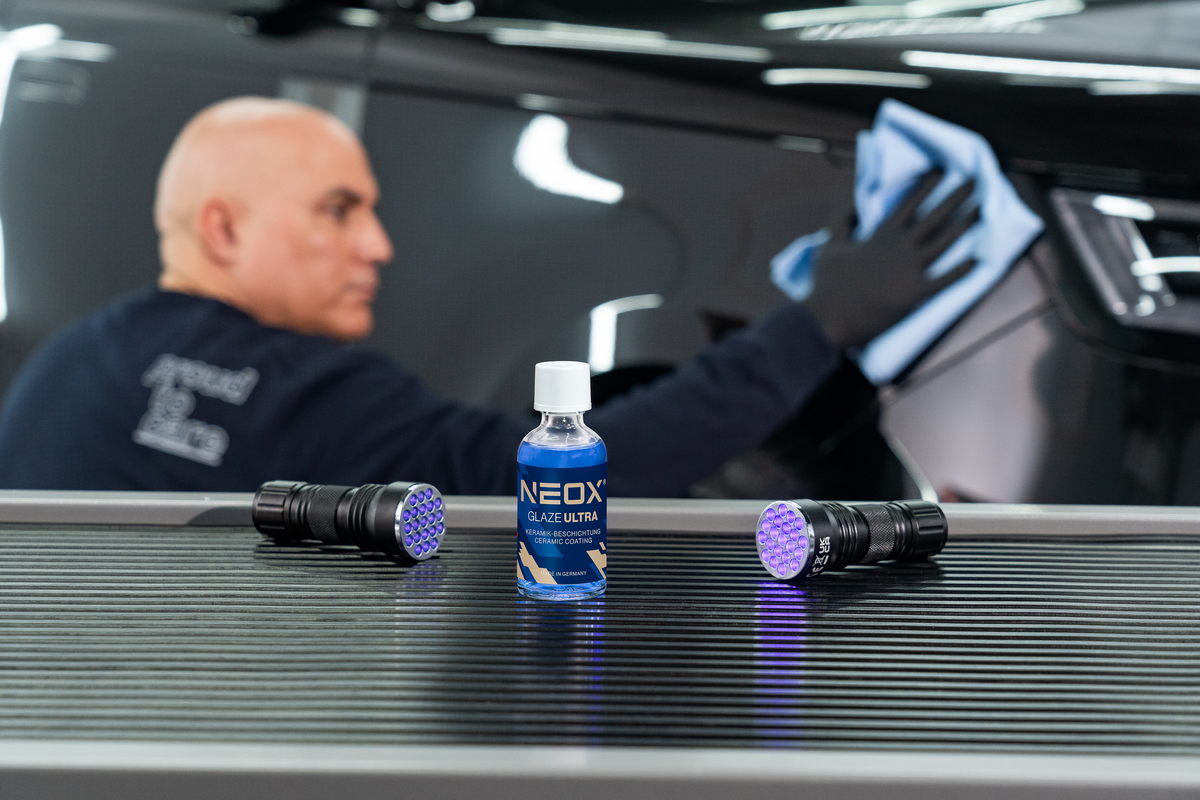 Полисилоксаны в составе NEOX® Glaze Ultra формируют трёхмерную защитную матрицу, которая химически связывается с лакокрасочными покрытиями, PPF, винилом, пластиком и резиной. Микроскопические неровности заполняются, образуя твёрдый, стойкий, супергидрофобный грязеотталкивающий слой.