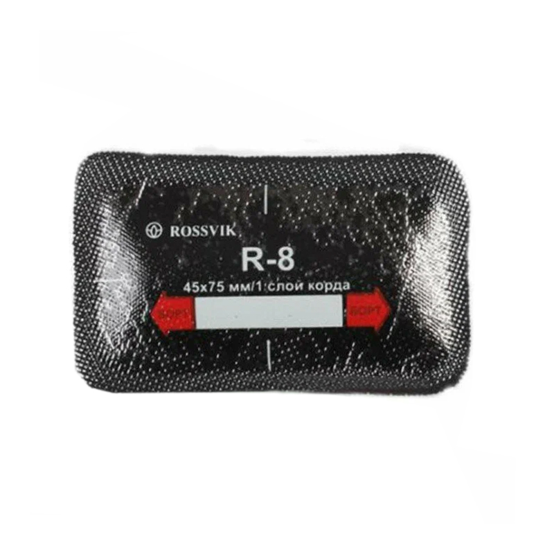 ROSSVIK R-08 ТЕРМО - однослойные кордовые пластыри 45х75 мм (серия R Термо), предназначенные для ремонта всех типов радиальных бескамерных и камерных автошин легковых автомобилей, грузового и пассажирского транспорта, сельскохозяйственной и карьерной техники. Обеспечивают надежный и долговечный ремонт в любом ремонтопригодном месте автошины. Вулканизируются "горячим" способом (с использованием вулканизатора).