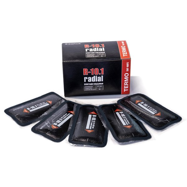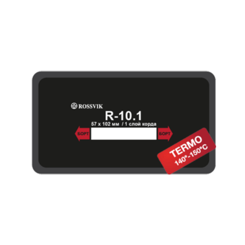 ROSSVIK R-10.1 ТЕРМО - однослойные кордовые пластыри (серия R) 57х102 мм, предназначенные для ремонта всех типов радиальных бескамерных и камерных автошин легковых автомобилей, грузового и пассажирского транспорта, сельскохозяйственной и карьерной техники. Обеспечивают надежный и долговечный ремонт в любом ремонтопригодном месте автошины. Вулканизируются "горячим" способом (с использованием вулканизатора).