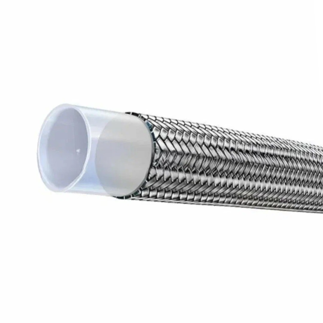 C-TF-S1-06 - гладкий фторопластовый (тефлоновый) рукав с номинальным (внутренним) диаметром 10 мм (3/8") с одной оплеткой из нержавеющей стали.