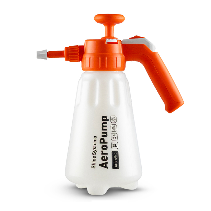 SHINE SYSTEMS AEROPUMP ACID+ALCO - профессиональный помповый распылитель объемом 2 л для эффективного нанесения спиртов и кислотных составов с уровнем pH от 0 до 8.