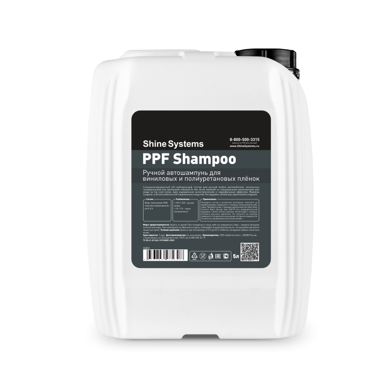 SHINE SYSTEMS PPF SHAMPOO, ручной шампунь для виниловых и полиуретановых пленок, канистра 5 л