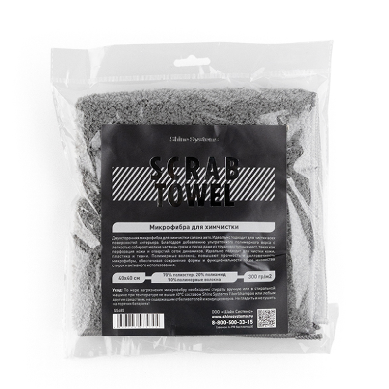 SHINE SYSTEMS SCRAB TOWEL - жесткая двухсторонняя микрофибра 40х40 см плотностью 300 г/м2 для химчистки салона авто.