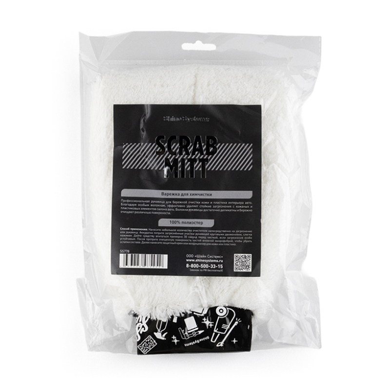 SHINE SYSTEMS SCRABMITT - профессиональная рукавица для бережной очистки кожи и пластика интерьера авто. Благодаря особым волокнам, эффективно удаляет стойкие загрязнения с кожаных и пластиковых элементов салона авто. Волокна рукавицы достаточно деликатны и бережно очищают различные поверхности.