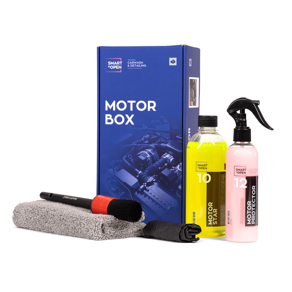 SMART OPEN MOTOR BOX - комплексный набор для очистки и защиты двигателя автомобиля от Smart Open. В комплекте все необходимое для высококачественной очистки внешней поверхности двигателя и подкапотного пространства.