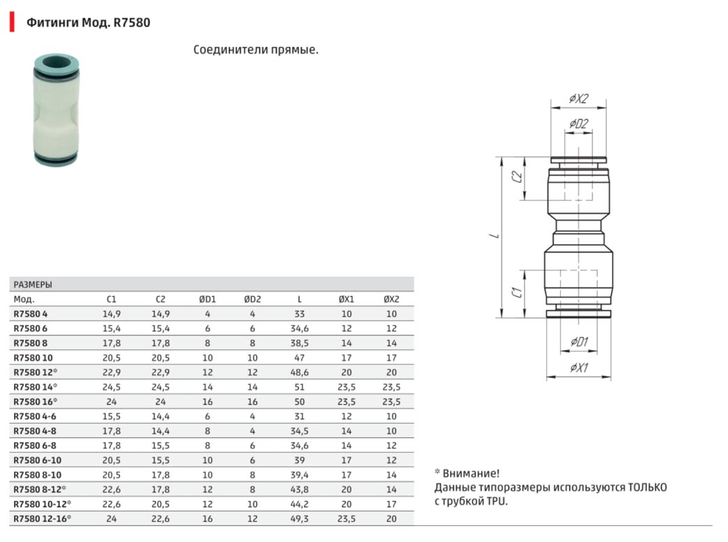 - Диаметры трубок: Ø 4, 6, 8, 10, 12, 14, 16