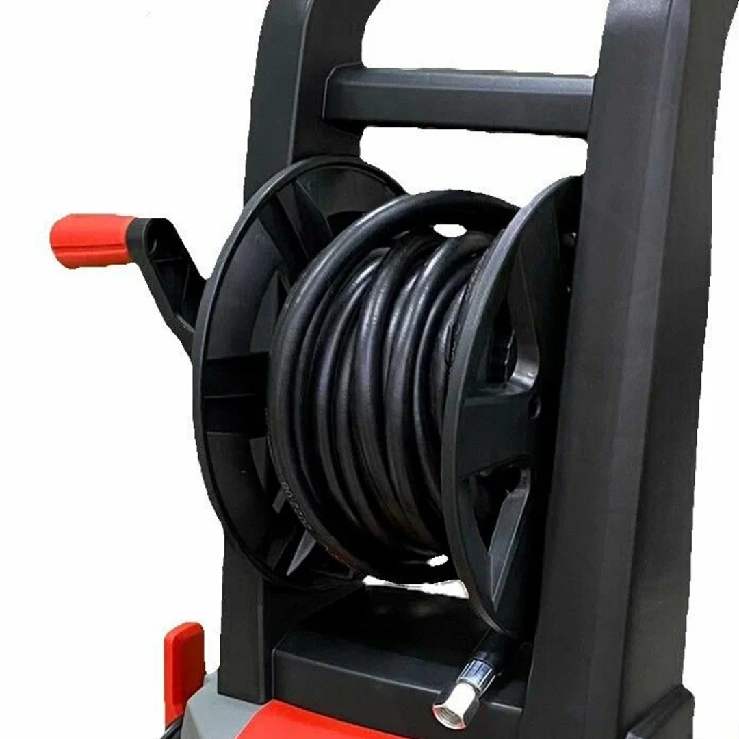 Оснащена индукционным мотором 220В / 2500Вт и имеет функцию Total Stop (отключение двигателя при достижении максимального давления, например когда пистолет не нажат). В конструкции предусмотрен барабан для намотки шланга высокого давления, а также емкость для подачи химии.