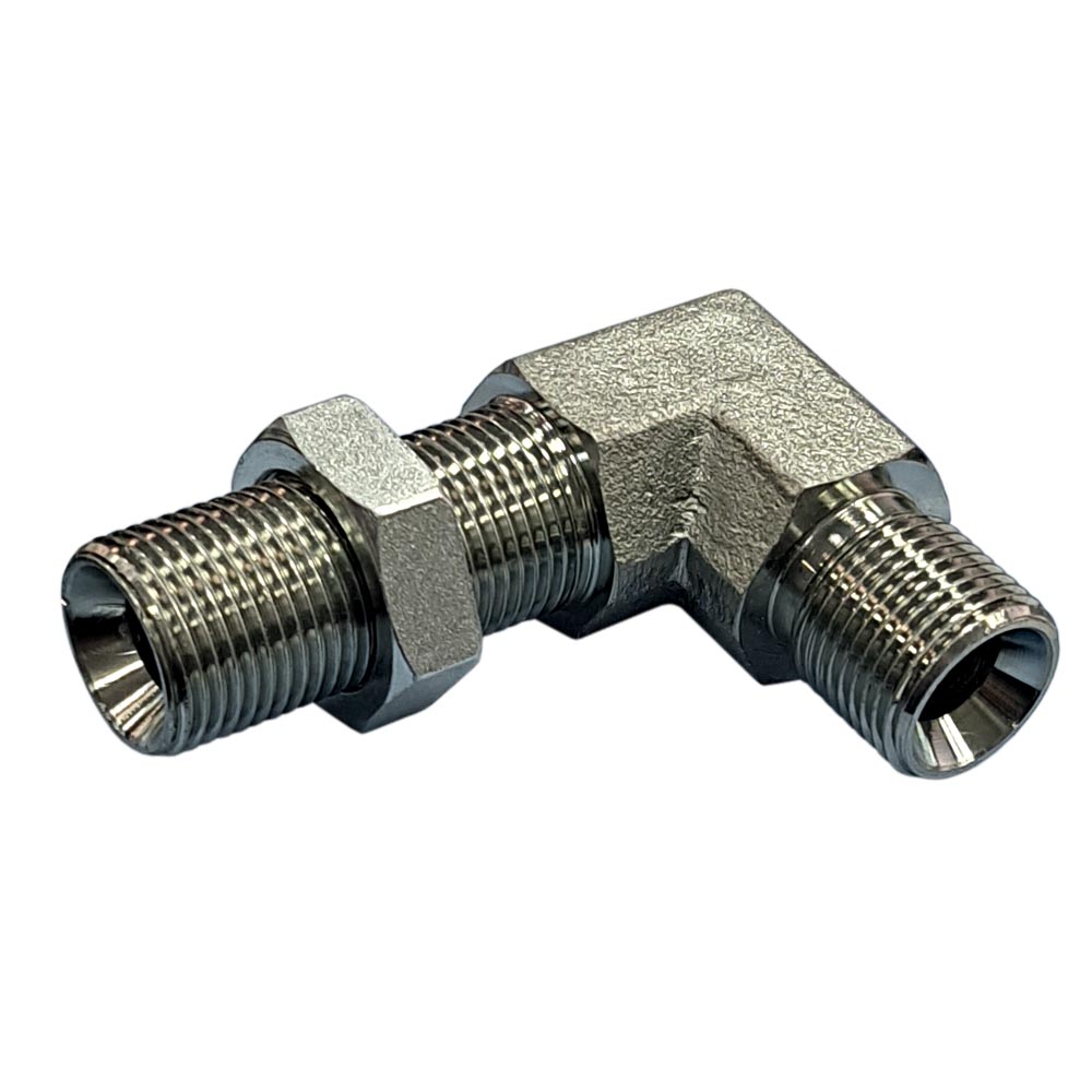 6B9-06LN - Г-образный резьбовой переходник формата BSP для гидравлических систем с рабочим давлением до 350 бар. Имеет удлиненную резьбовую часть с одной стороны и свободную фиксирующую гайку.