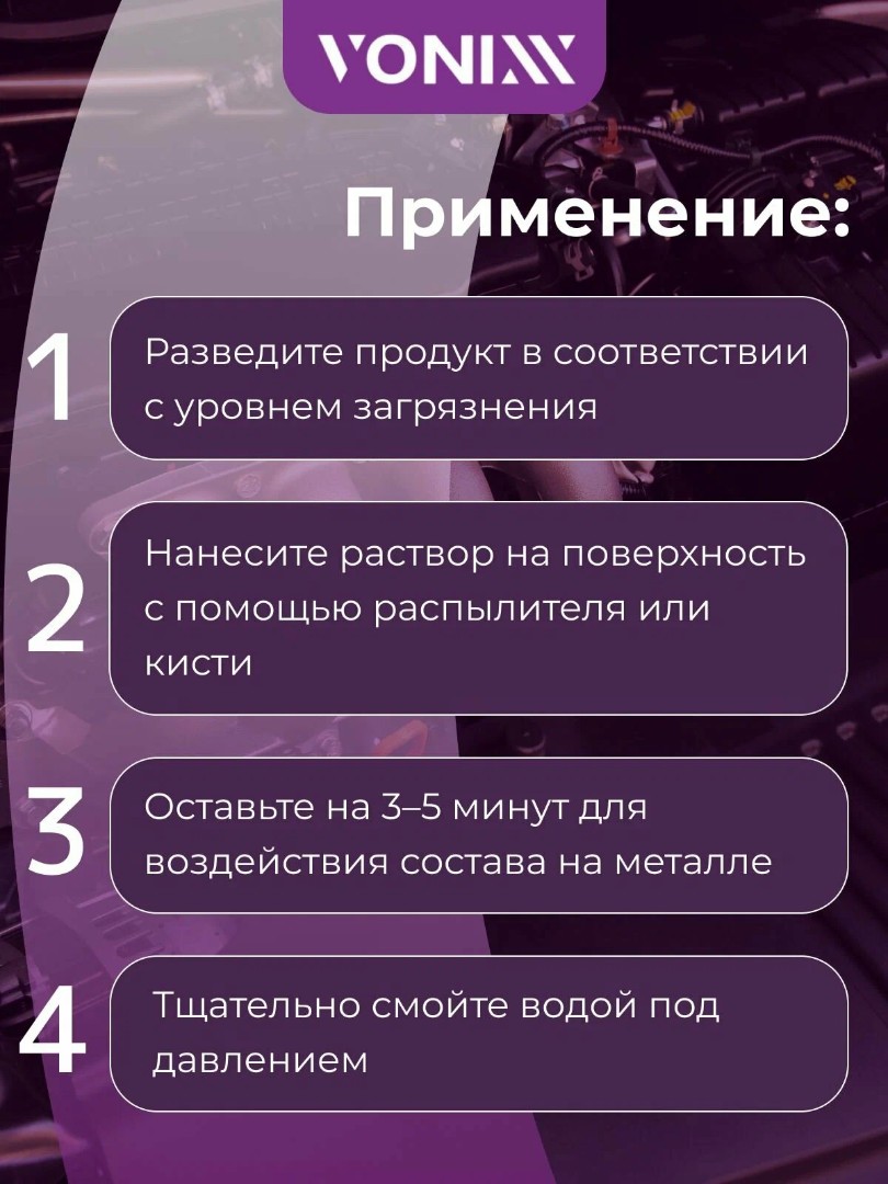 Используйте защитные перчатки и очки при работе с продуктом. Избегайте контакта с кожей и глазами. Храните в недоступном для детей и животных месте. Не допускайте попадания на чувствительные поверхности без предварительного тестирования.