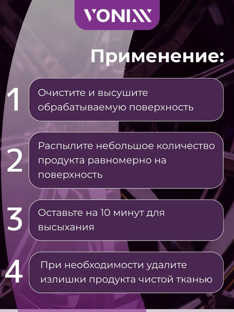 - Распылите небольшое количество продукта равномерно на поверхность